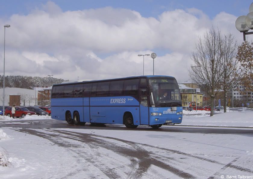 Uddevalla Omnibus 124 har just startat från Kampenhof på väg mot NÄL på linje 675.