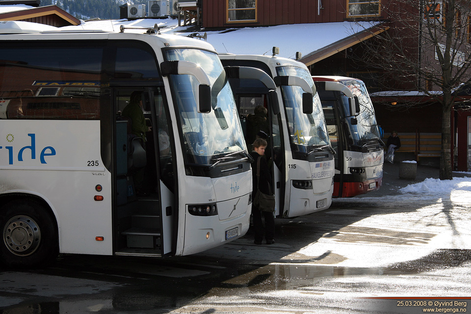 Så litt senere kom det busser vestfra. Det er Tide Buss #235 og Telemark Bilruter #115 som kom over fjellet og skal til Oslo, mens Telemark Bilruter #59 har kommet fra Fyresdal og lesser av fra godsrommet.