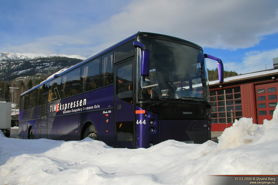 Ikke lenger etter ankom det en buss til, denne gangen fra Notodden, Nettbuss Drammen #444. Østlandets eneste fiolette Horisont kjører nå på ruta Notodden-Seljord, og har selvfølgelig fått navn, og denne gangen ble det "Sterke Nils". Tidligere har de fleste navnene blitt hentet fra Øst-Telemark, men dette er et navn fra Vest-Telemark. Sterke-Nils ble født like ved Brunkeberg i Kviteseid i 1720, men slo seg senere ned i Seljord. Sterke-Nils var usedvanlig sterk, og du kan lese mer om han her: Wikipedia-artikkel om Sterke-Nils.