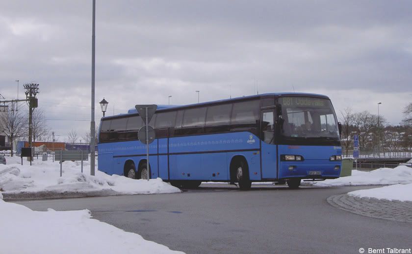Vänersborgs Linjetrafik 16, f d Kjellgrens i Tranemo, lämnar resecentrum mot Uddevalla som linje 681.