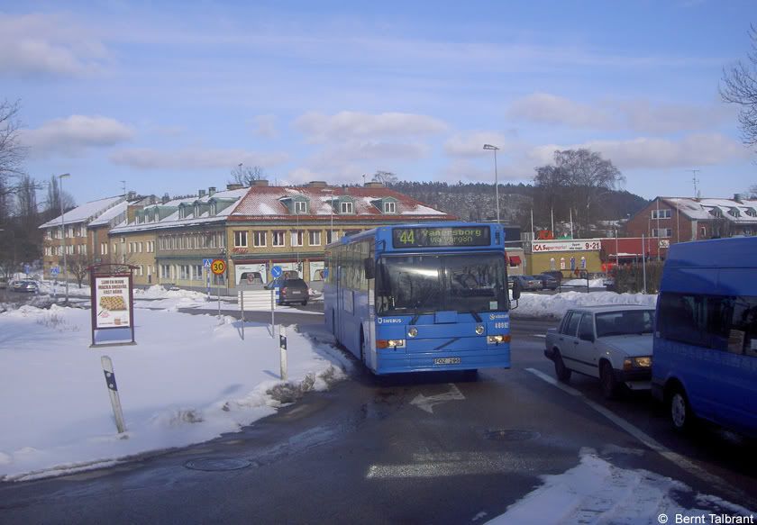 Till sist en bild tagen genom bussfönstret: Swebus 4492 på Nordkroksvägen i Vargön som linje 44 från Hol till Vänersborg.
