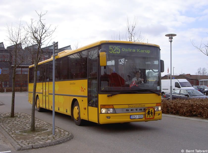 XHJ600 lämnar busstaionen som linje 525 till Östra Karup.