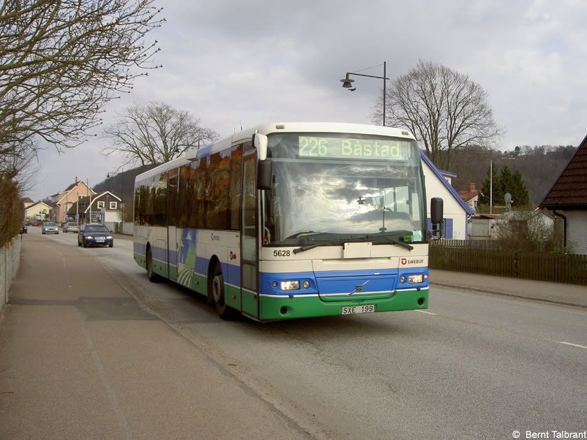 Swebus 5628 på Köpmangatan som linje 226 från Laholm.