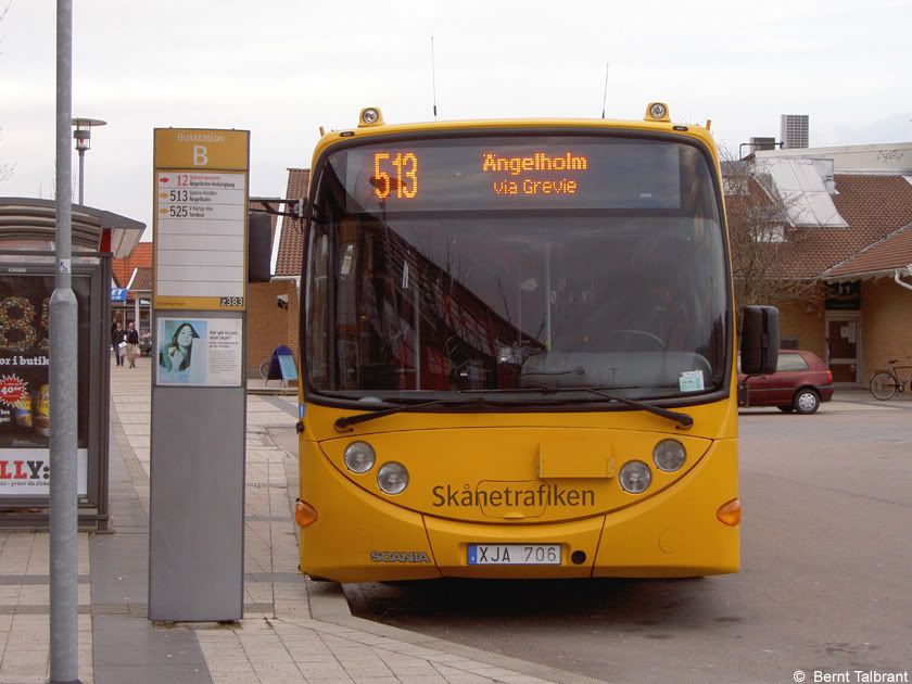 XFM942 ankommer busstationen på linje 513 från Ängelholm.