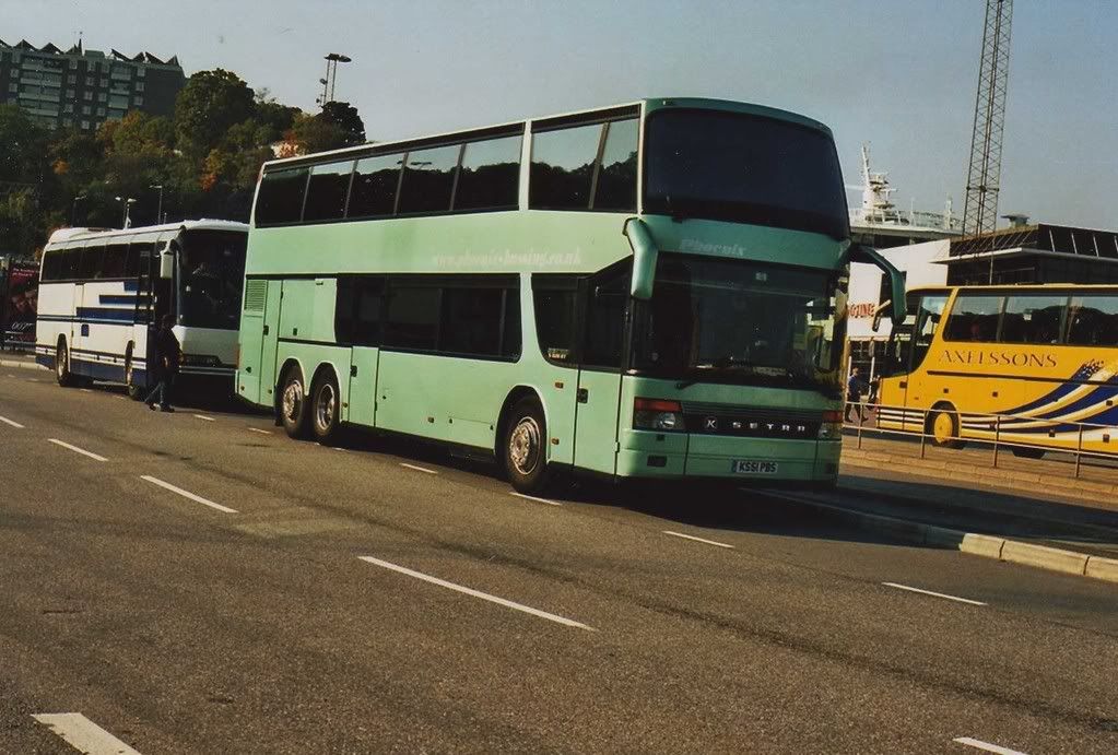 Denna brittiska Setra S328DT är på väg mot Finland. Loggad för Phoenix.