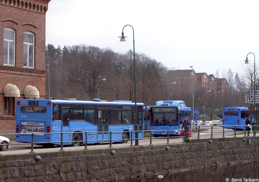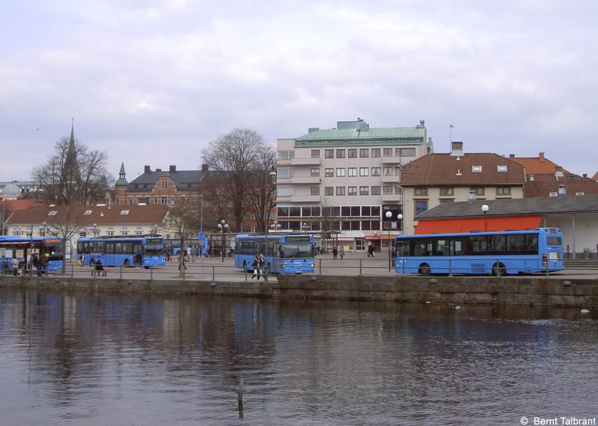 Ännu en bild från Söderbrogatan - bl a syns 023 på linje 7 och 041 som ovanligt nog gick på 40-linjer idag istället för normalt linje 8. Här kommer den som linje 47 från Ekås men har redan skyltat om till linje 40 mot Tosseryd.