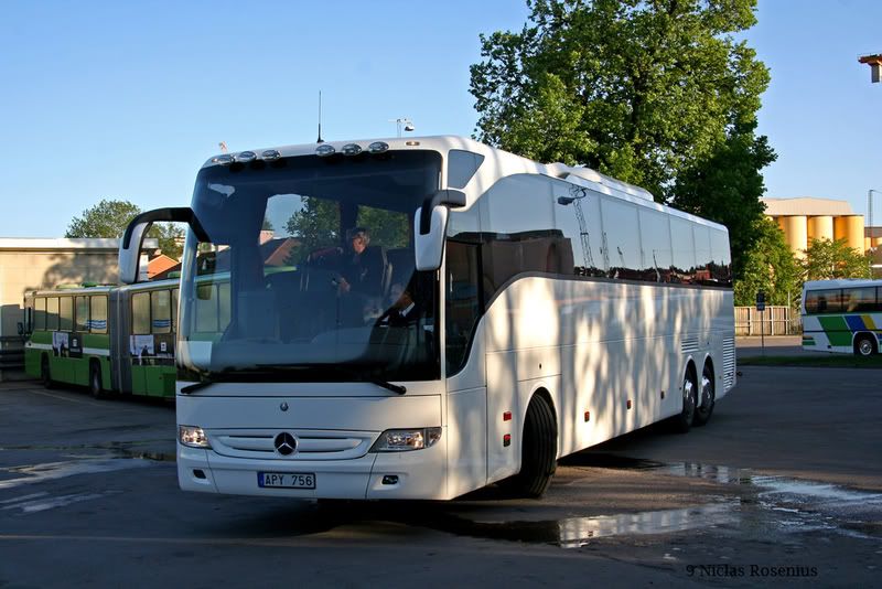 Ikväll när jag kom ner till garaget efter avslutad dag så stod Gimos sprillans nya Tourismo L nere vid våran gamla chartertvätt och skulle fylla på vatten till toan.