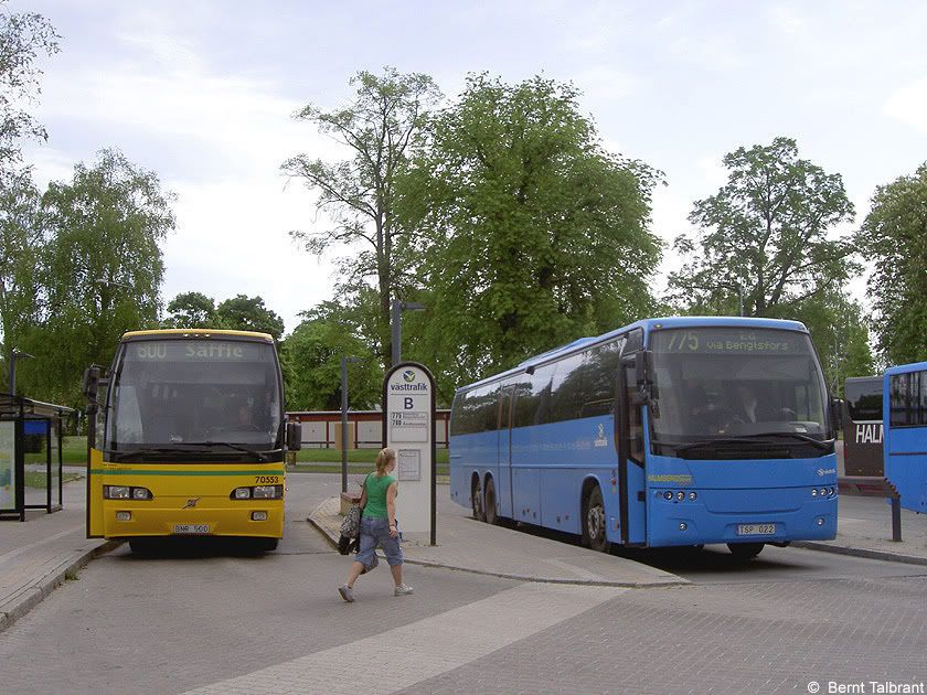 Orusttrafiken 70553 som linje 800 till Säffle och Halmbergs Buss TSP022 som linje 775 till Bengtsfors och Ed.