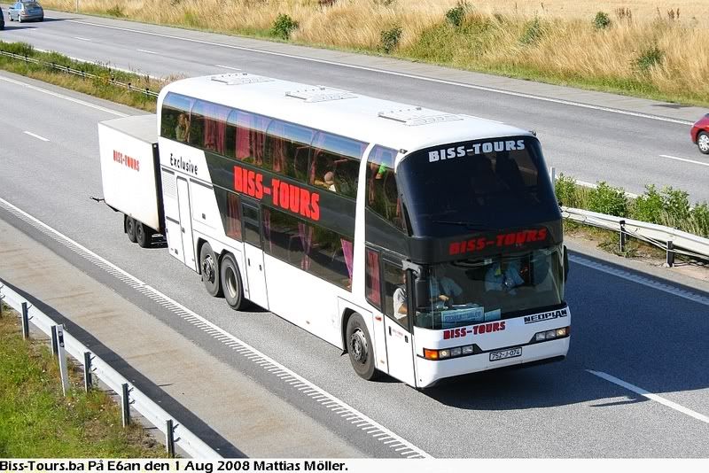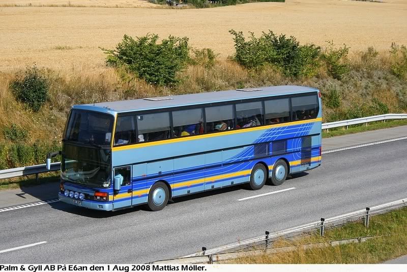 Den här bussen tillhör inte längre Palm & Gyll. Sedan juni i år ägs den av en privatperson/firma i Laholm. Man kan väl anta att verksamheten är att köra resor till Balkan.
