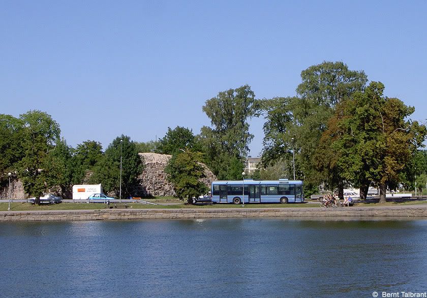 Ännu en bild på Veolia 2776, här som linje 5 mot centrum på Slottsholmsvägen vid Stegeholms slottsruin.