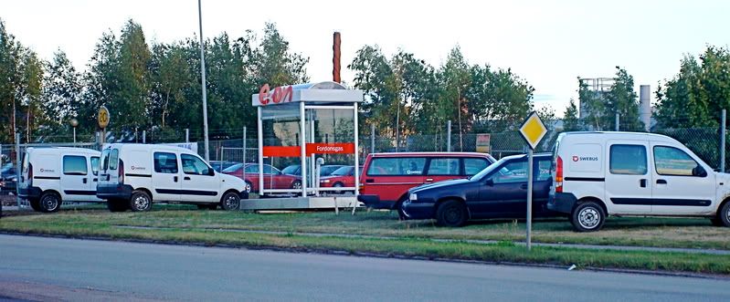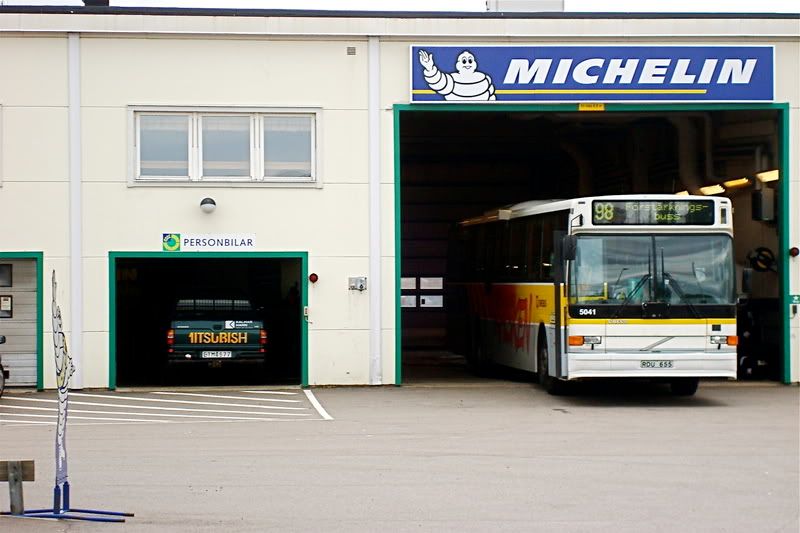 Swebus bygger om för en gasmack på depån. Bilarna fick vara utanför grindarna