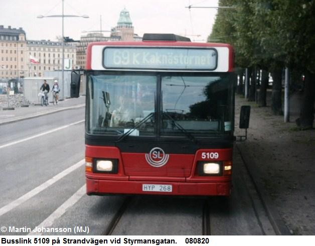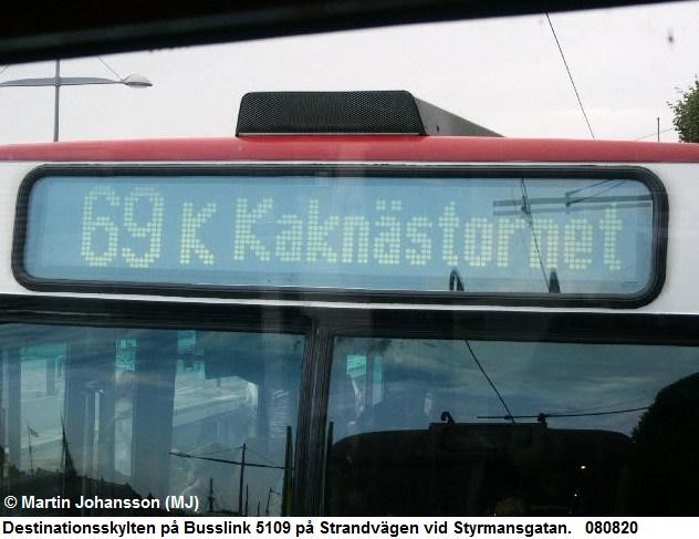 Det här nya tillägget för SL linje 69 var ju på tapeten här för ett tag sedan. Stötte på en buss med denna tilläggsskyltning i dag. Bilderna är tagna genom bakfönstret på en av Djurgårdslinjens spårvagnar.