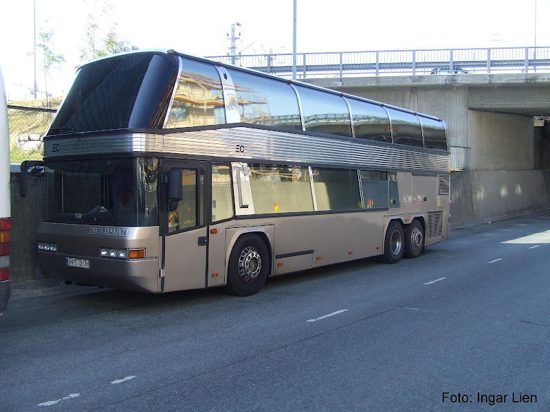 Trevligt! Företaget sysslar med transport av artister. Har själv fotat denna buss både i Uppsala och i Helsingborg. Förutom denna har man ytterligare en Skyliner, en Spaceliner samt en Starliner II. Man lär även ha en till Neoplan under renovering men har tyvärr inte individen i huvudet just nu.