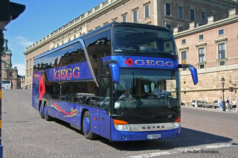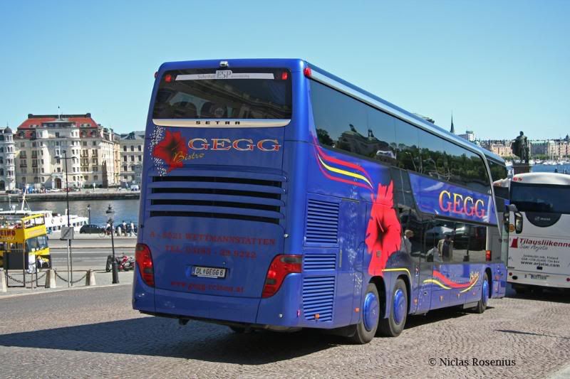Föraren på bilderna är ägaren själv, Christian Gegg. En riktigt trevlig och sympatisk person, väldigt stolt över sina bussar. Nästa år skall han byta ut denna buss på bilden till en likadan men med mer utrustning. Bussen har 46 sittplatser på övervåningen och 16 platser nere i Bistron. Platserna i bistron är aldrig sålda utan passagerna på övervåningen kan gå ner och ta sig en öl eller äta en matbit under färden. Tyvärr gick det inte att ta några bilder inne i bussen pga att det var för mycket folk i den.
