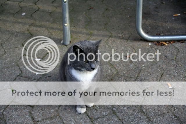 Sist kommer en bonusbild. Satt på pizzerians uteservering där en katt ville hjälpa mig med pizzan. Och det var lite bacon som blev över på min tallrik, så...  ;)