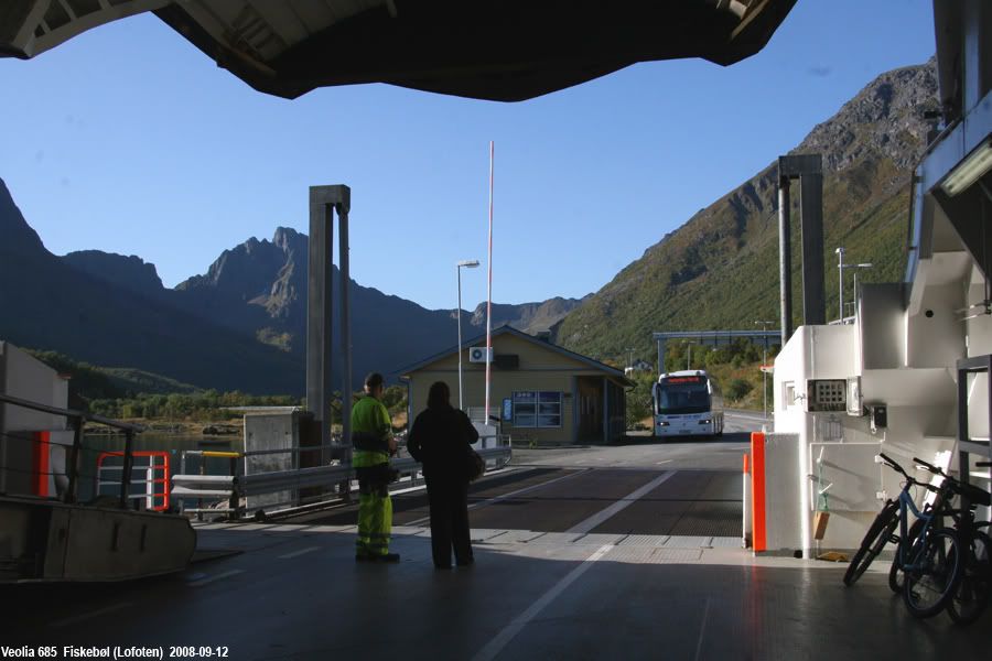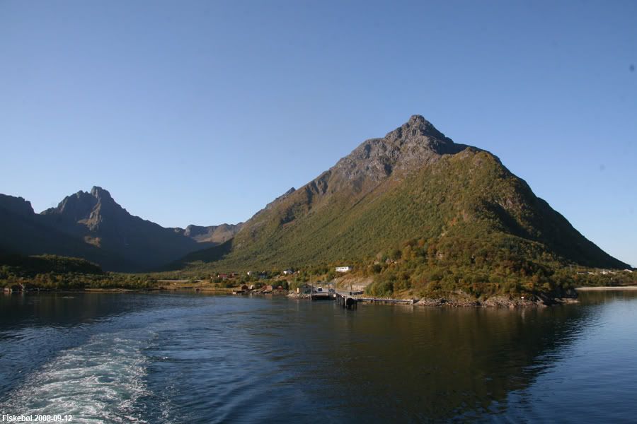 Morgonen därpå i Fiskebøl, samma Lofotekspress nu på väg till Narvik lämnar över folk till anslutande båt mot Melbu.