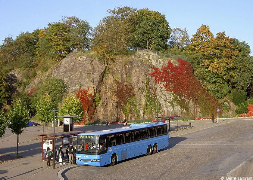 En mindre bra bild på Veolia 2337 på Sven Eriksonsgatan som linje 100 till Göteborg. Som synes är den nu uppmärkt enligt Västtrafiks vanliga designprogram, något den inte var när jag såg den sist - se detta inlägg.