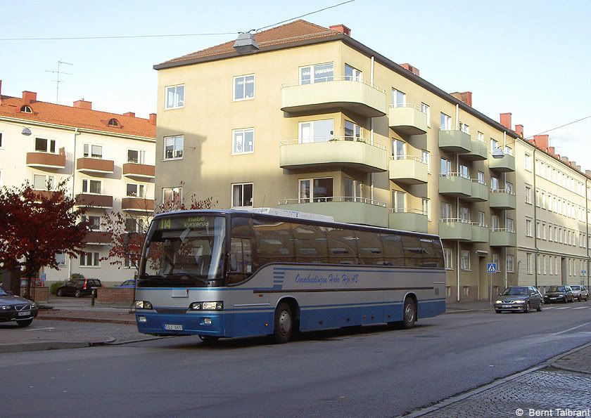 Omnibuslinjen Habo-Hjo i Habo ANC198 som linje 114 på Västra Storgatan.