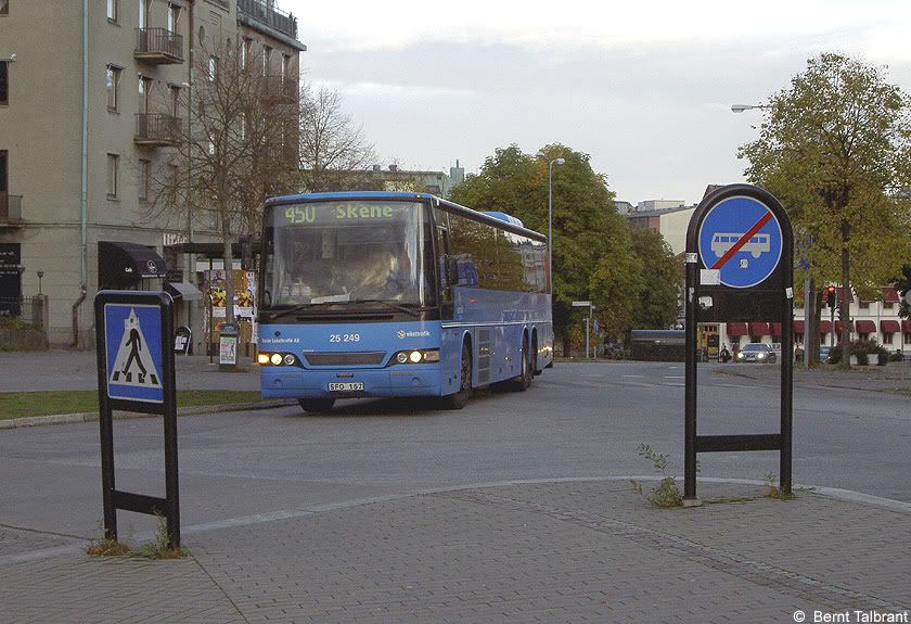 BL 249 kommer från Skene på linje 450 och ska nästan direkt vända åter dit igen.