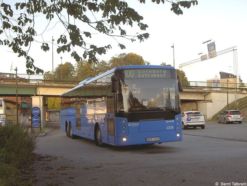 Veolia 2338 avgår som extrabuss på linje 100 till Göteborg.