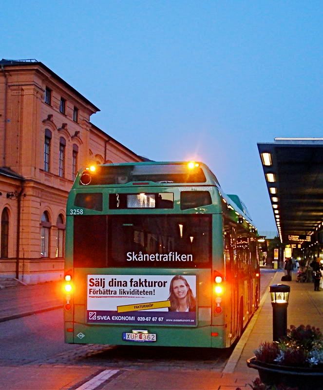 När jag är tillbaka i Malmö vid 19-tiden står denna buss med varningsblinkers på. Det var inget fel på bussen men kanske chauffören ville varna andra för att det var han som skulle köra  ;D (Chauffören brukar vara populär bland passagerarna)