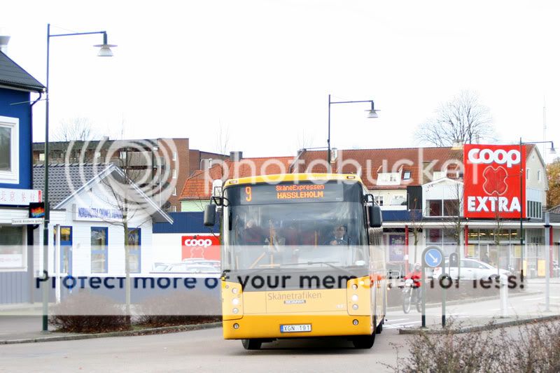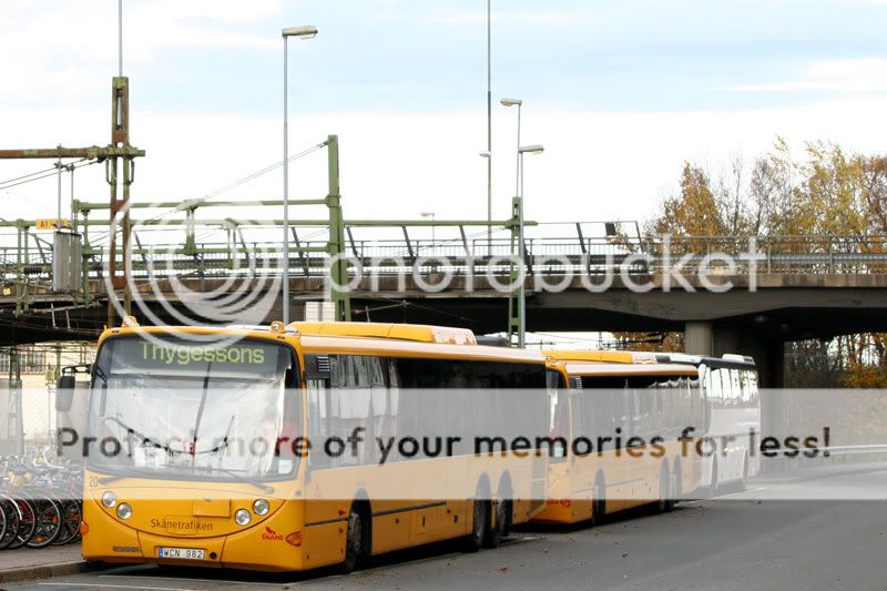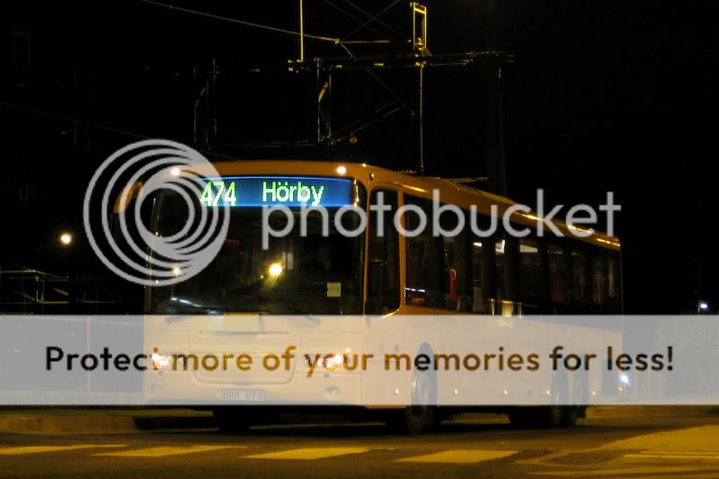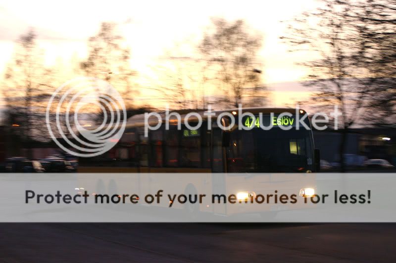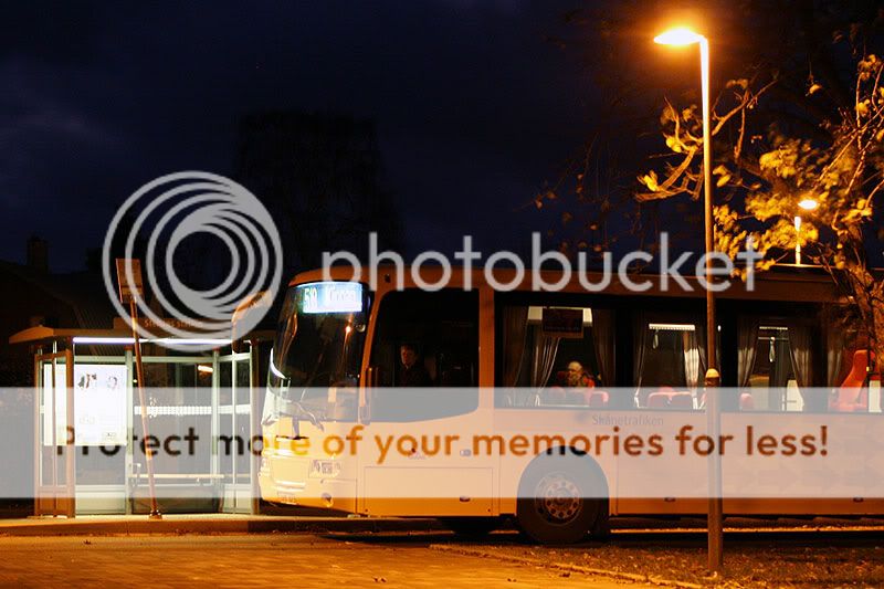 Jag skiftade lite mellan ISO400 och 800, den sista bilden togs med en fickkamera som lades på ett stabilt underlag och där gick det bra med ISO100. Angående Volvo 8500LE så har vi 2 st. i Eslöv. Den su ser i Klippan är bussen från Eslöv och i bl.a. Malmö finns några 8500 från Kalmar dock inte Low-Entry. Jag vet inte om det finns fler 8500LE i Skånegult, har inte sett de själv.