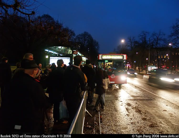 För exakt en vecka sedan var det ett kortare stopp i trafik på Roslagsbanan mellan Stockholm Ö och Roslags Näsby/Näsbypark mellan ca 14:40-17:10. Jag var framme i Östra station 16:05 för jag hade ingenting bättre för mig hemma och ville kolla läget på ersättningen. Visst fanns det folk där vid det nya hållplatsläget ute på Valhallavägen. Kom det några bussar? Nja...16:18 dök denna Söderhallare upp efter ha kört in till terminalen och angjort gamla hållplatsen. Sen gick det ingenting förran 16:47 när Hornsbergs flex 5138 kom och drog iväg till Roslags Näsby. Men visst, jag har full förståelse att det blev så få bussar, det är ju måndag dagen efter och det betyder att ett stort antal har just veckovilan under söndagen och därför kunde ej hoppa in.