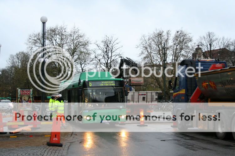Omnilinken som svängde in i Lilla Nygatan (eller Södra Promenaden) håller på att vända. Det här är inget bra ställe att vända på, så chauffören måste ha någon bra anledning.