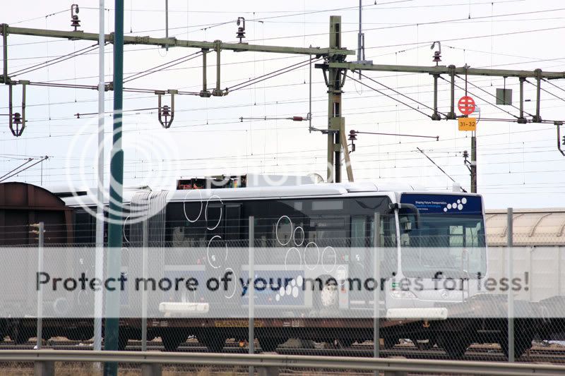Det är inte så ofta man ser Citaro i Trelleborg, dessutom ledvagn. Någon som vet var den ska testas? Oslo kanske? För det verkar vara en hybridbuss.