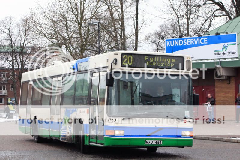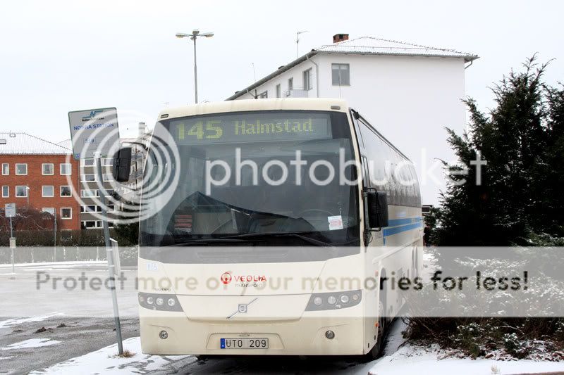 Som sagt, jag tröttnade på Helsingborgs enformiga flottan och helt spontant åkte till grannlänet. Det blev lite strul med biljettköp då Halland finns inte med i Skånetrafikens nya biljettmaskiner, det fick bli SJ:s gråa maskin som tog betalt och sedan blev "Ur funktion". Men det som var bra var att man i Helsingborg kunde köpa biljetter från Båstad till Halmstad (då jag hade Frikortet för resor inom Skåne). Köper man från Skånetrafiken så är man bunden till den aktuella avgångsstationen. Men detta är helt OT, nu över till bilderna. Som vanligt börjar man vid stationen och tar bilden på den första bussen man råkar se. Här var det en enda buss, det känns lite som att stationen ligger lite "utanför" för övrig kollektivtrafik. Det blev en Volvo 8500LE, såklart.