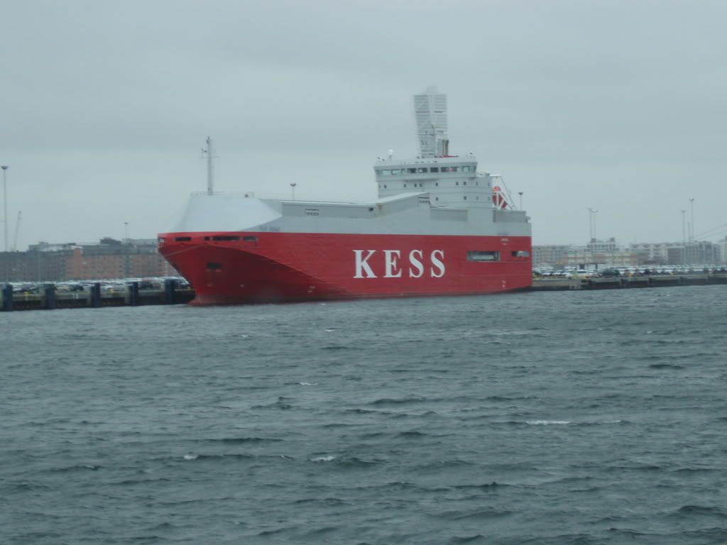 Med den blå båten kommer det bilar till Malmö frihamn och med den röda båten skeppas det ut bilar från malmö till olika hamnar i norden.