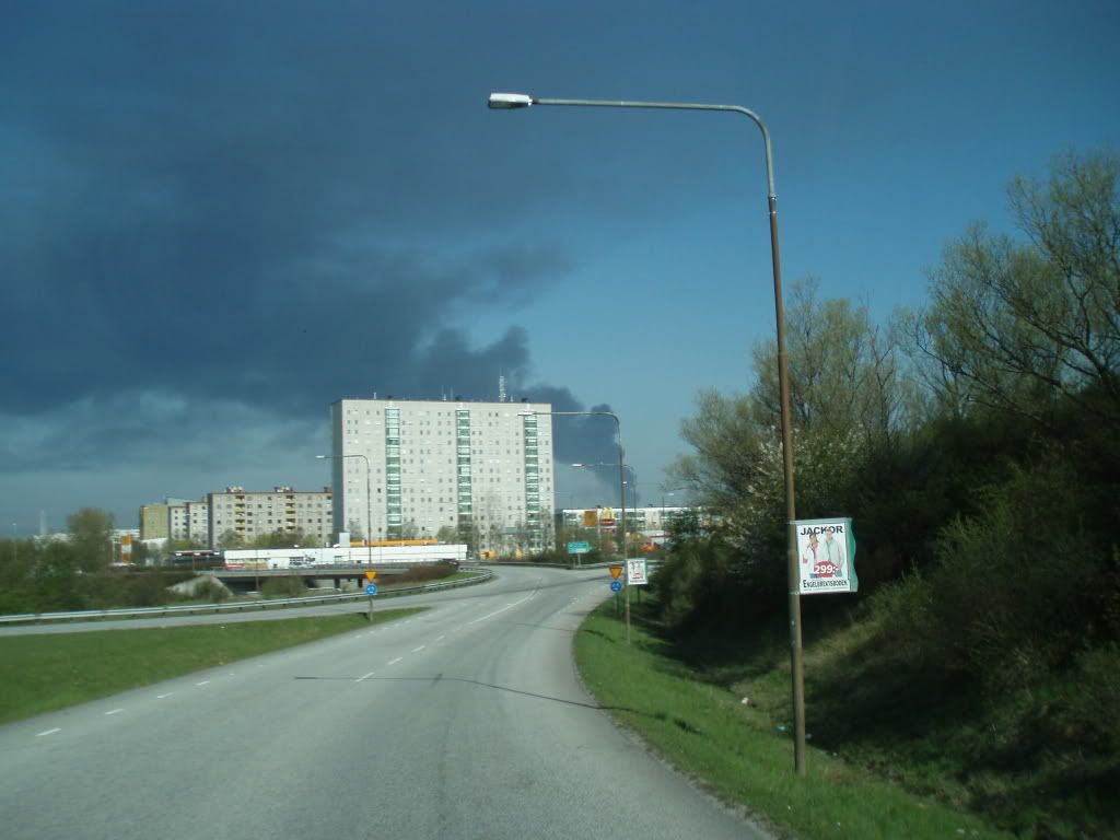 Lokalradon varnar för giftig rök, vid besvär sök läkare gå inomhus stäng ventilation samt stäng dörrar och fönster, lokalradion: vi sänder vår praktikant till hamnen för att kolla läget!!!?????