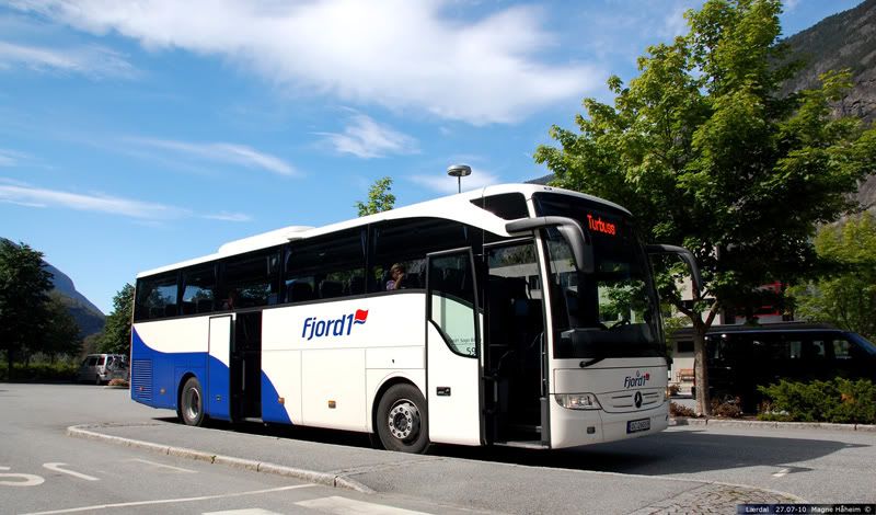 Neste morgen kl. 09.00, tok jeg Vestlandbussen fra Bergen mot Ålesund. Det var Firdas nye treakslede OmniExpress #2200, som fraktet meg avgårde. Når jeg kom til Førde, fikk jeg beskjed om at det ikke gikk noen buss til Ålesund på denne avgangen. Jeg ble sendt til Skei, hvor jeg skulle ta lokalbuss til Nordfjordeid, for videre forbindelse. Her fikk jeg også testet #2210 til Sogn og Fjordaneekspressen. En svært behagelig buss, men jeg hadde ikke blitt lei meg om den bare hadde hatt 49 seter.