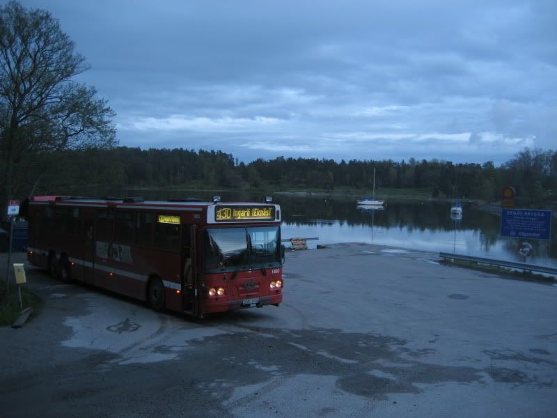 Swebus 1802 i skymningen vid Eknäs brygga.
