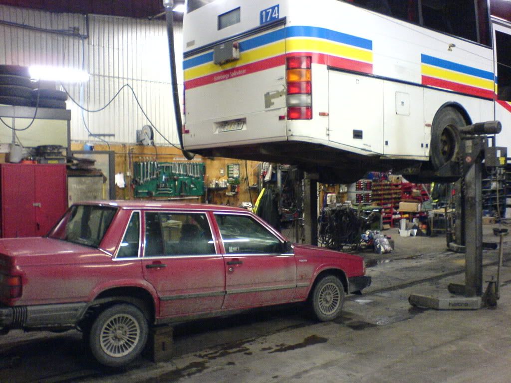Var har jag parkerat min Volvo 740 och varför. Under en buss,  därför att pallbockarna var försvunna. :)