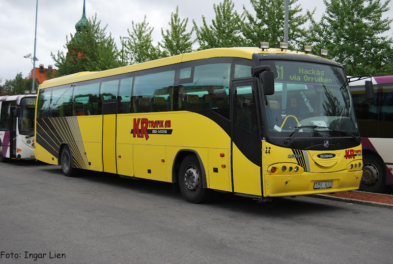 Her er KR 44 - TMX820 Scania K114EB Irizar InterCentury - på Östersund Bussterminal tirsdag 7. juli.  Dette er en busstype som nesten ikke finnes i Norge, vi har nesten bare de høyere Century-variantene.