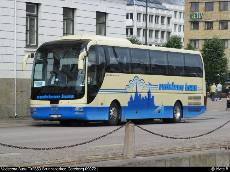 Vadstena Buss TXF853 inväntar sina passagerare på Stortorget