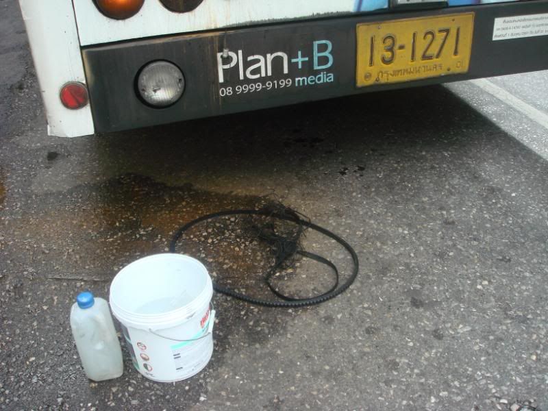 Här är en bekant situation för många bussförare: fläktremmen har gått av.