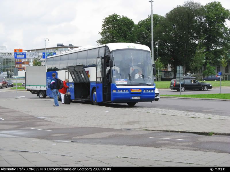 Här håller samma buss på och lastar i Göteborg några timmar tidigare.