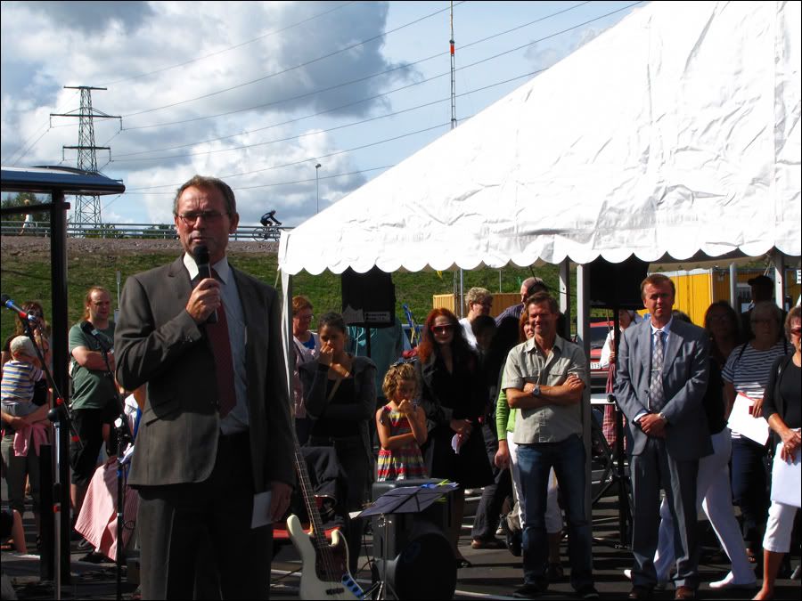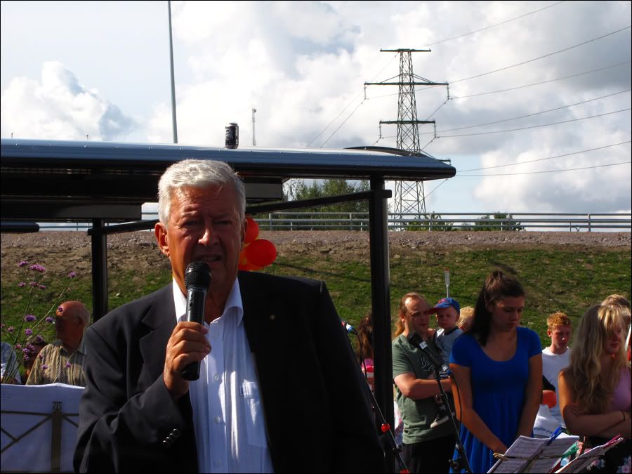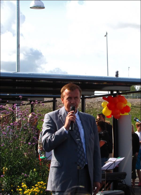 Presentatören Leif Lindberg pratar lite om Kimstad och dess nya station.