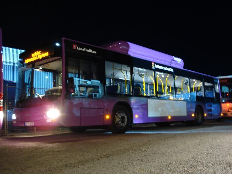 .. Swebus 7059 & 7060 användes för Swebus personal till kvällens oavgjorda match på Behrn Arena mellan ÖSK och Blåvitt. Inte den bästa bilden på 7059, men dock en bild. Nu återstår mest smärre detaljer inför trafikstarten 1 oktober, som natten till torsdagen kommer innefatta överföring av samtliga Scanpointmaskiner från Busslinks bussar och montering i dessa nya MAN bussar, samt bara att få fram gasen till nya depån, men det ska man väl hinna ordna till nästa torsdag 8). (I skrivande stund är det stopp någonstans på vägen.)
