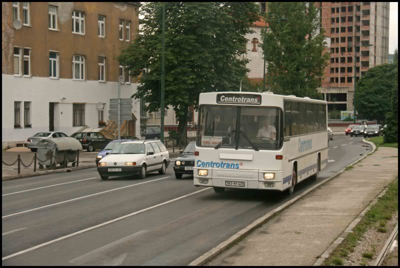 Första bosniska bussen fotades inte i Bosnien utan i Kroatien, dock ganska gränsen. Centrotrans lack på ena sidan...