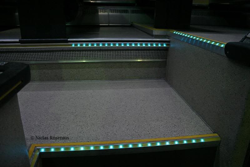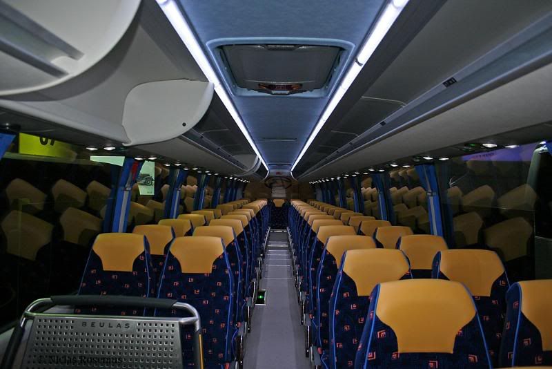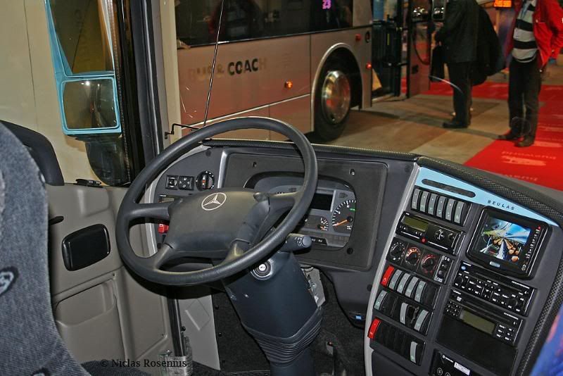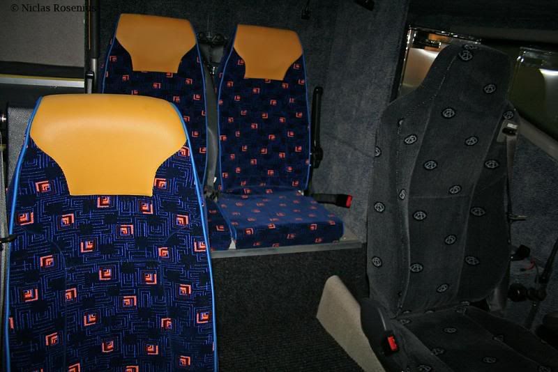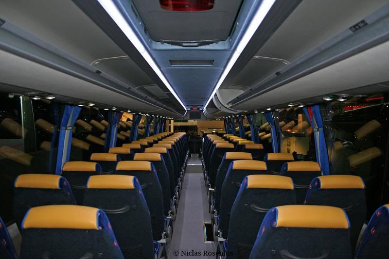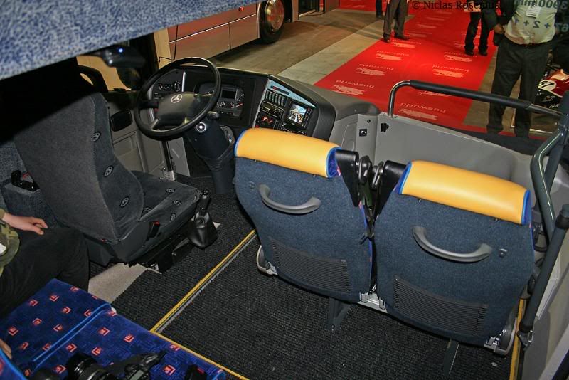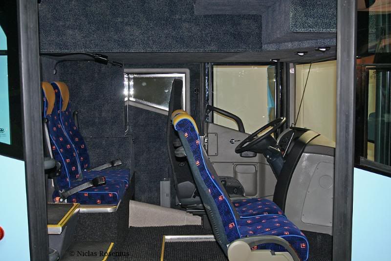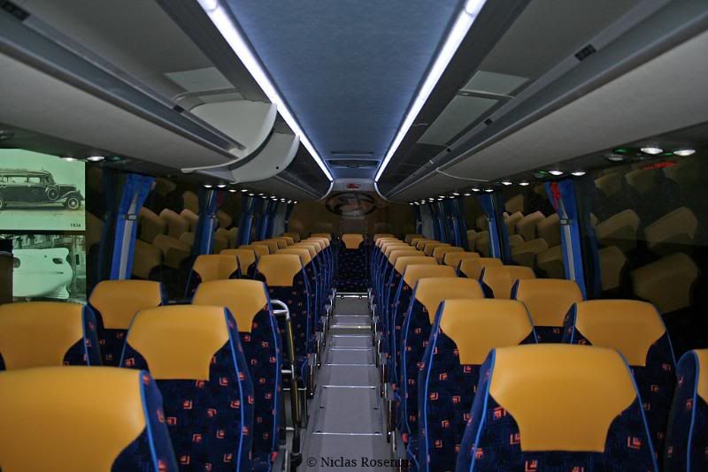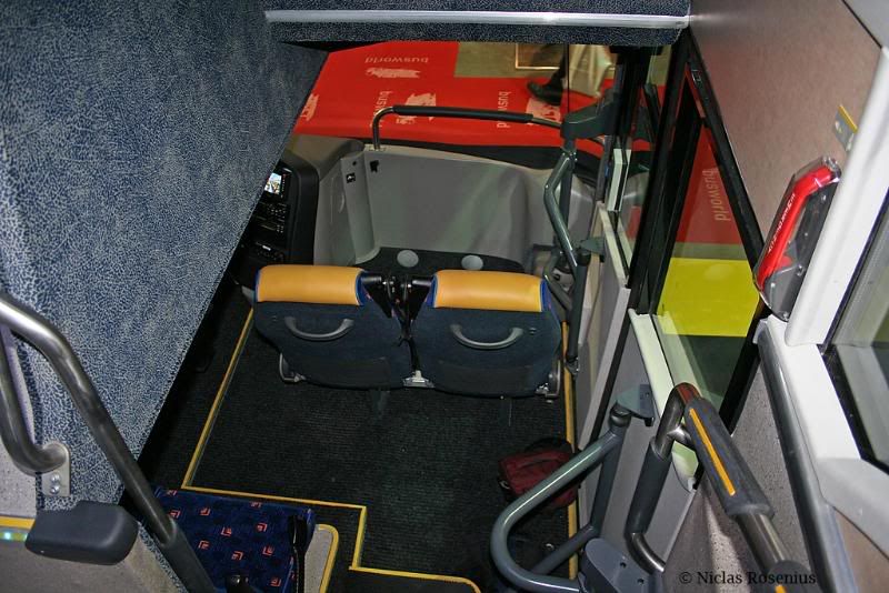 Skall väl också säga att de två stolarna bakom förarplatsen inte fanns i "vår" buss. Däremot fanns det två guideplatser.