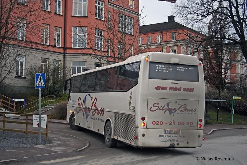 Personalen ombord är ambulanssjukvårdare, båda två. Känner chauffören på bilden. Siljan buss står "bara" med buss personalen kommer företrädesvis från Rättvik så bussen stor oftast stationerad där i veckorna. Händer väl ganska ofta att siljanbuss behöver bussen till annat på helgerna... Så har jag förstått det.