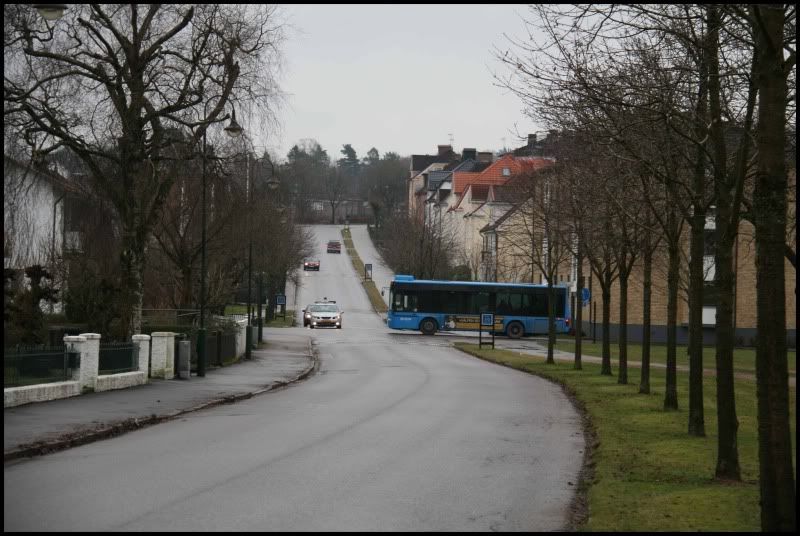 Mycket riktigt så hade bussen kört fel, här vänder den i korsningen mellan Vedensgatan och Gustav Adolfsgatan.