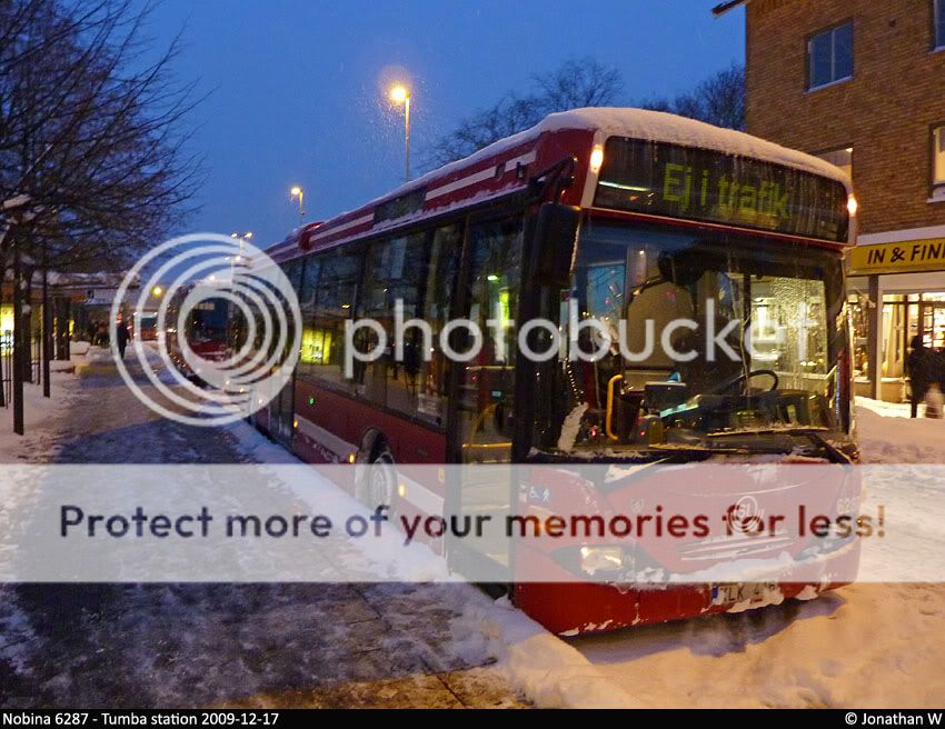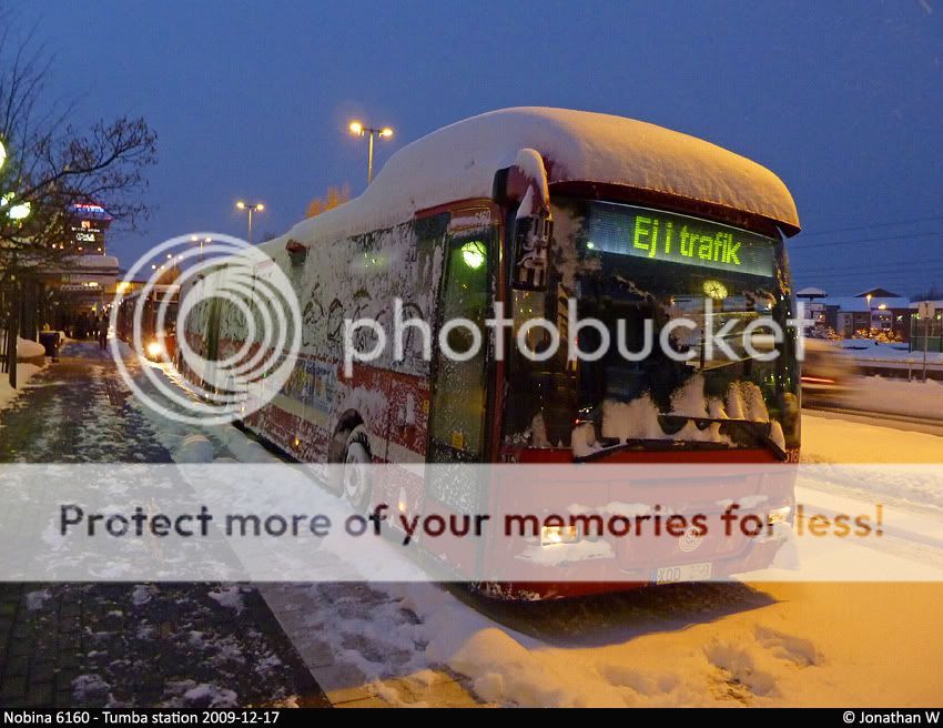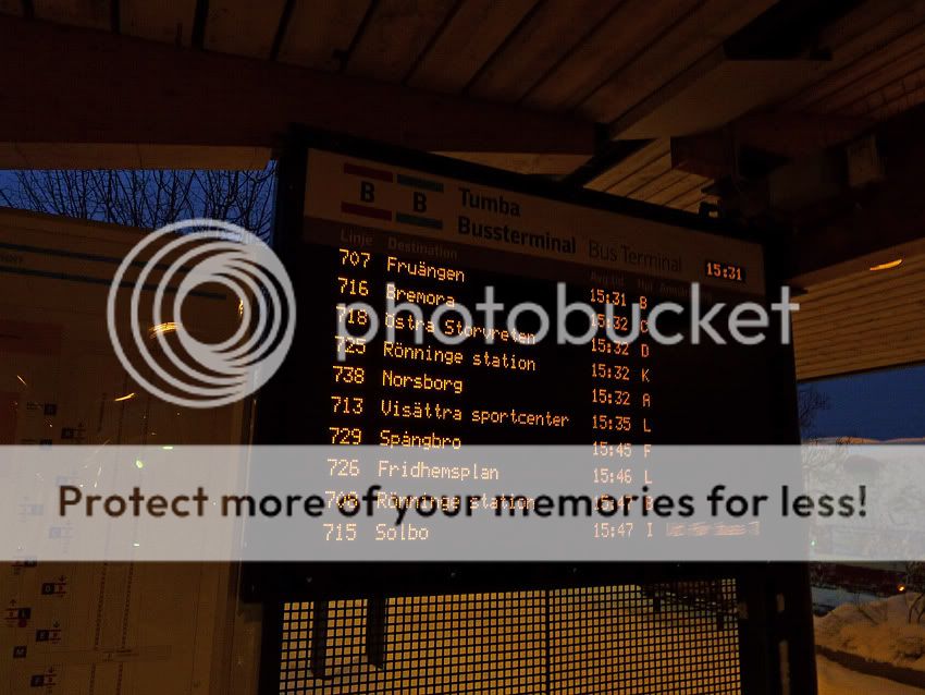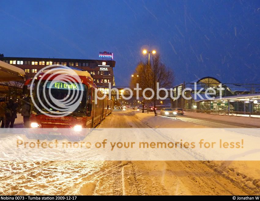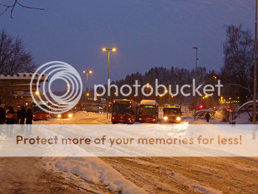 Så här såg det ut vid Tumba station tidigare i em, bussarna stod stilla med motorerna igång.