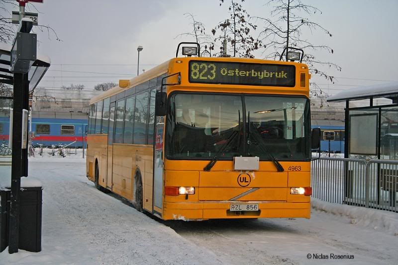 Fin bild. Men vilken färgsättning hade 4963 innan omlackeringen? Det är ju inte en gammal UL-vagn. Gick den i någon annan länstrafiks färgsättning?