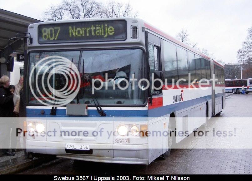 Ett minne blott - både linjenummer och buss är numera historia. 20-metersvagnen 3567 på UL 807 från Uppsala mot Norrtälje en höstdag 2003. Har för mig att 3567 ursprungligen levererades för flygbusstrafiken mellan Uppsala och Arlanda (UL 801).