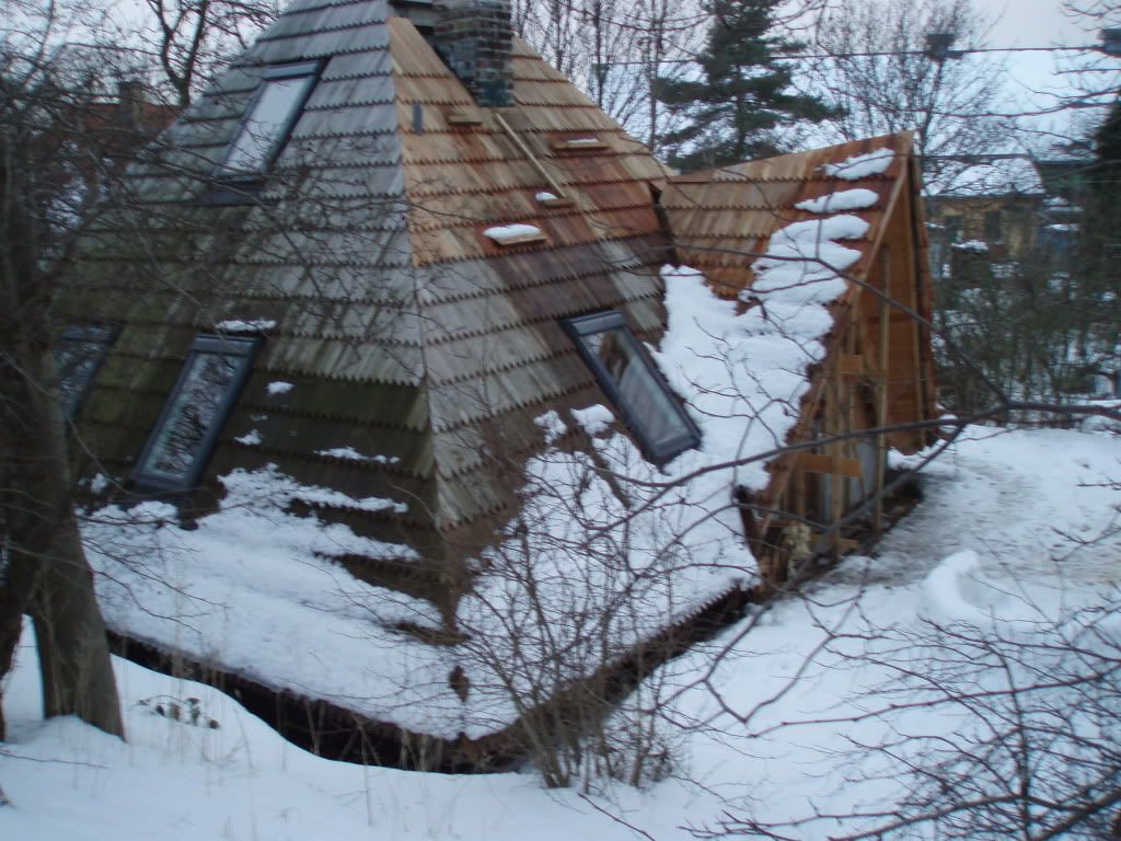 I detta hus ska det inte finnas ett enda spik i i konstruktionen enl. hörsägen.
