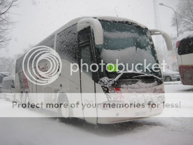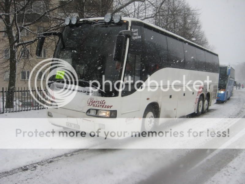 KJ-Buss kom med två bussar, en volvo och en scania irizar: